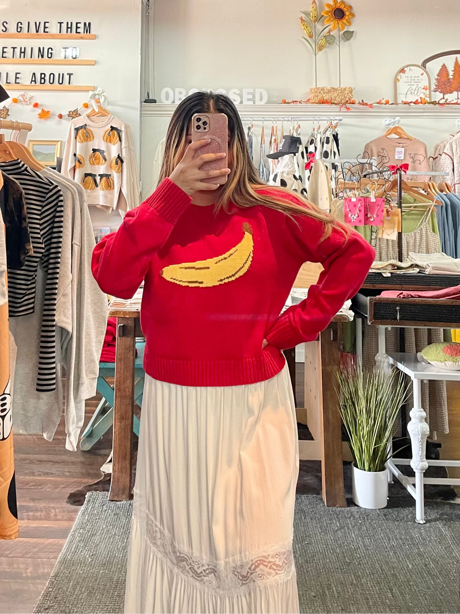 Banana Knit Sweater - Red