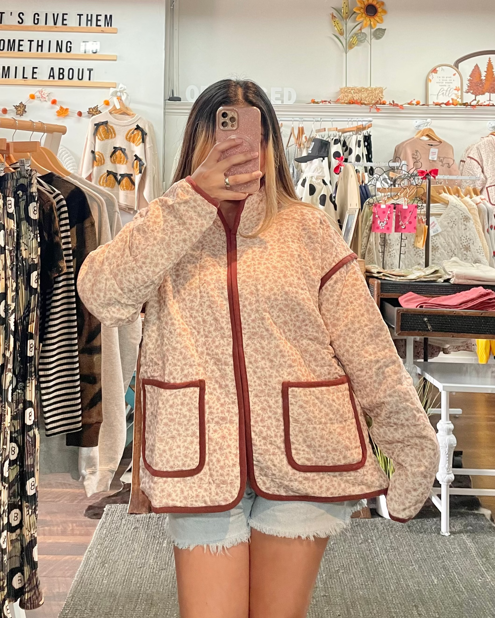- Trimmed with contrasting piping along the collar, cuffs, pockets