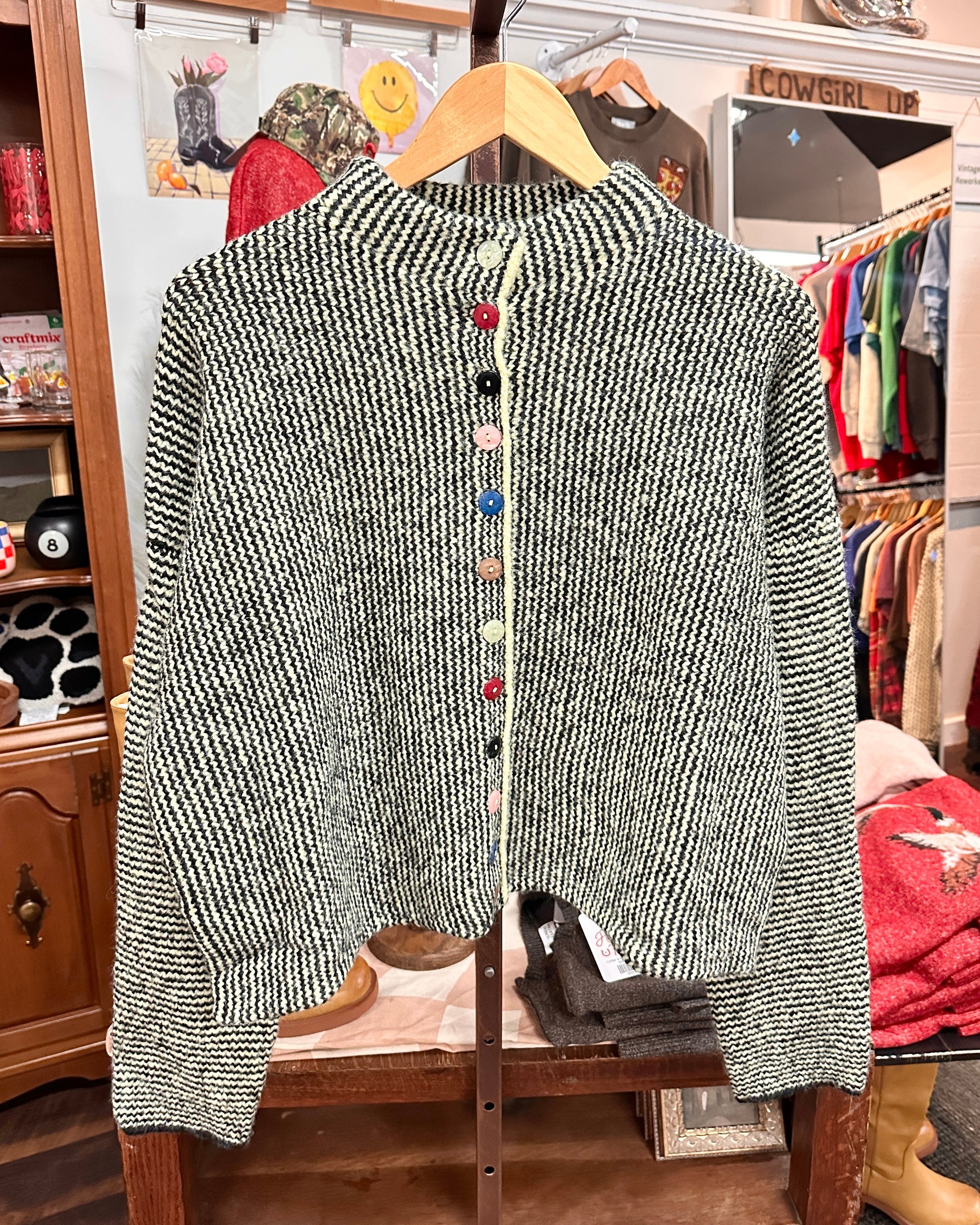 A comfy and cozy cardigan featuring colorful buttons giving this the perfect whimsical touch!